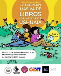 El Sábado 27 de Septiembre de 2025 se realizará la 42° Liberación Masiva de Libros Por las calles de Ushuaia.