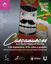 El Jueves 11 de Septiembre de 2025 se pondrá en escena Cascanueces en la Noche Mágica de Navidad en la Sala Niní Marshall de la Casa de la Cultura. La función estará a cargo de estudiantes del Estudio Coreográfico de Ushuaia, el taller municipal de Danza Clásica y contará la presencia de los bailarines Camila Pereyra y Santiago Campos en los roles principales.