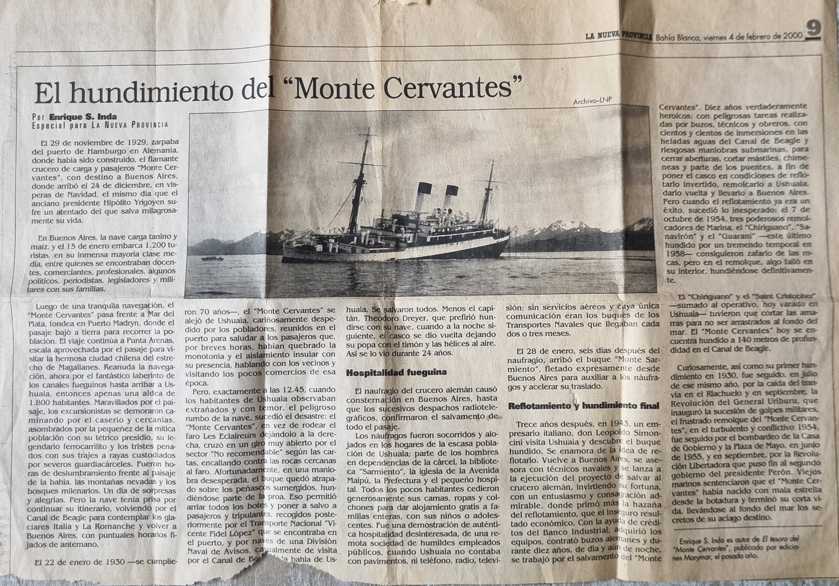 Recortes de prensa: La Nueva Provincia, 4 de febrero de 2000