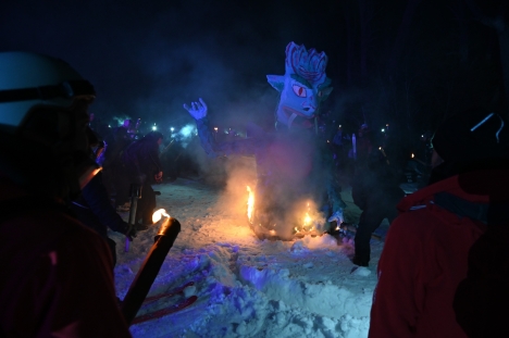 A partir de las 13:00 horas, la base del cerro se transformó en un gran espacio de encuentro cultural y deportivo. Hubo degustaciones de productos regionales, demostraciones de saltos en snowboard y esquí alpino a cargo de deportistas locales, y espectáculos en vivo que atrajeron a cientos de personas. Destacó especialmente una colorida actuación circense con fuego, que anticipó el momento más esperado: la quema del muñeco Lakuma a las 20:00. El diseño y la construcción del Lakuma estuvieron a cargo de los alumnos del Colegio Polivalente de Ushuaia, quienes pusieron en juego su creatividad y compromiso con la cultura local. Este muñeco simbólico, que representa el espíritu de la montaña, fue prendido fuego en una ceremonia emotiva que contó con la participación de vecinos, turistas nacionales y extranjeros, quienes disfrutaron de una noche mágica bajo el cielo fueguino. La conducción y animación del evento estuvo a cargo del reconocido Nico Oliva, quien acompañó cada momento con energía y cercanía, conectando a los asistentes con el espíritu de la celebración. Amenizó la noche la actuación de la banda Sicarios, que con su música encendió el ambiente y dejó a todos con ganas de más. La actividad, organizada desde el Centro de Montaña Cerro Martial en colaboración con instituciones locales, reafirmó el compromiso con la promoción del deporte de montaña y la valorización de las tradiciones regionales. Una jornada que, sin dudas, quedará grabada en la memoria colectiva como un homenaje auténtico y vibrante a quienes aman y defienden la montaña.